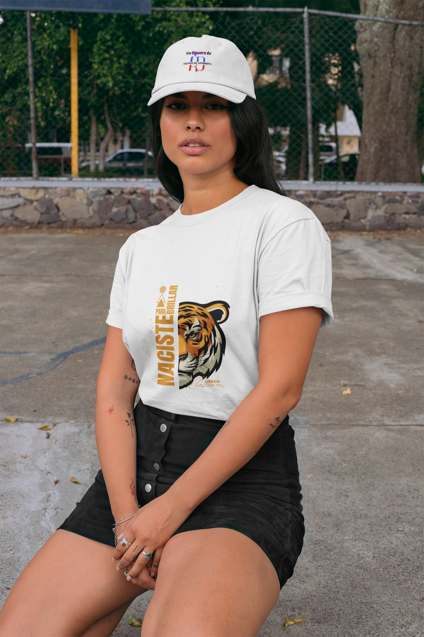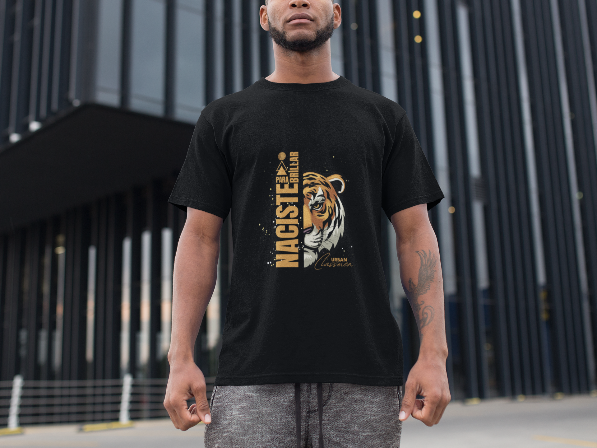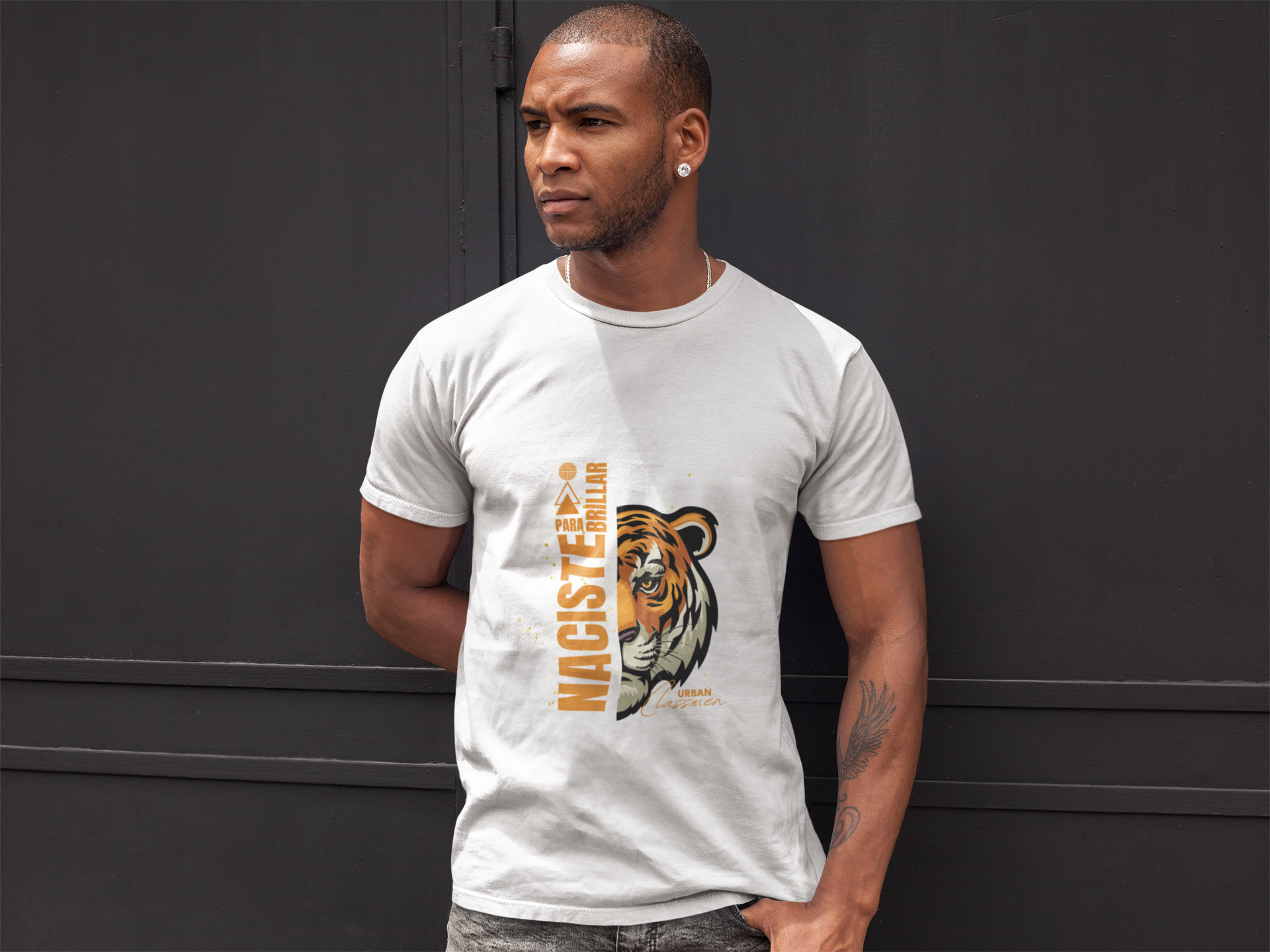 Camiseta tamaño regular con una frase motivadora: "Naciste para brillar".