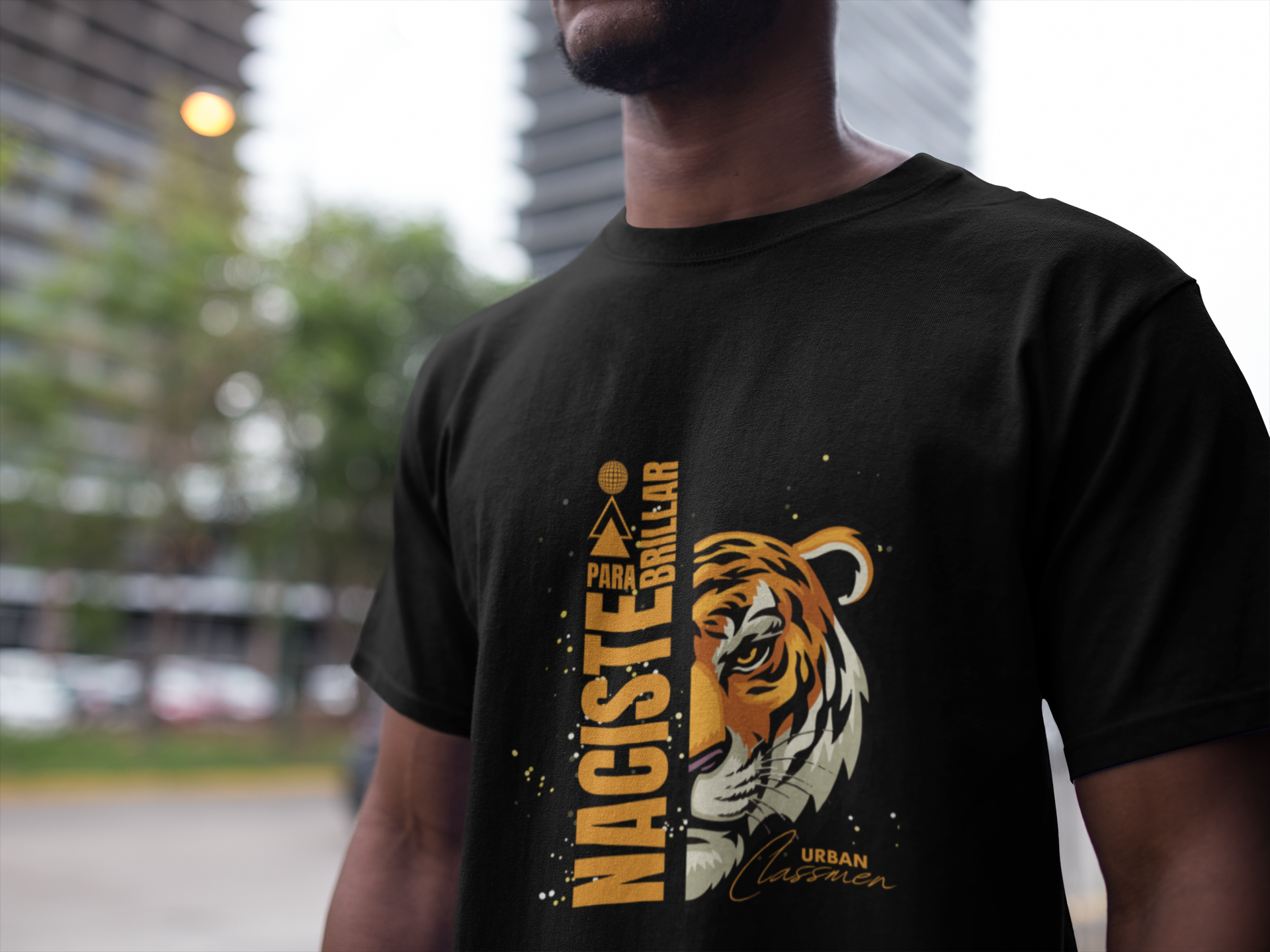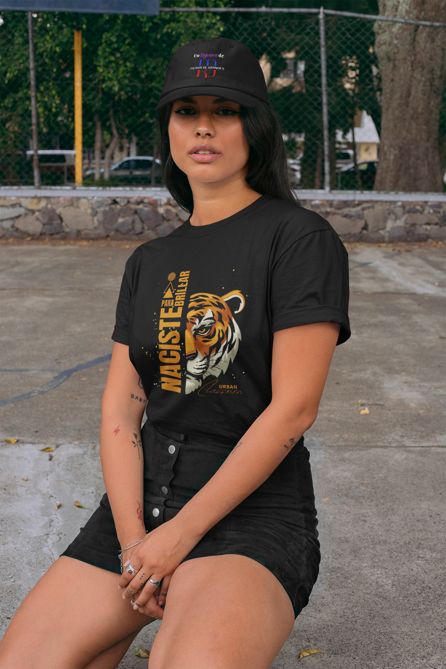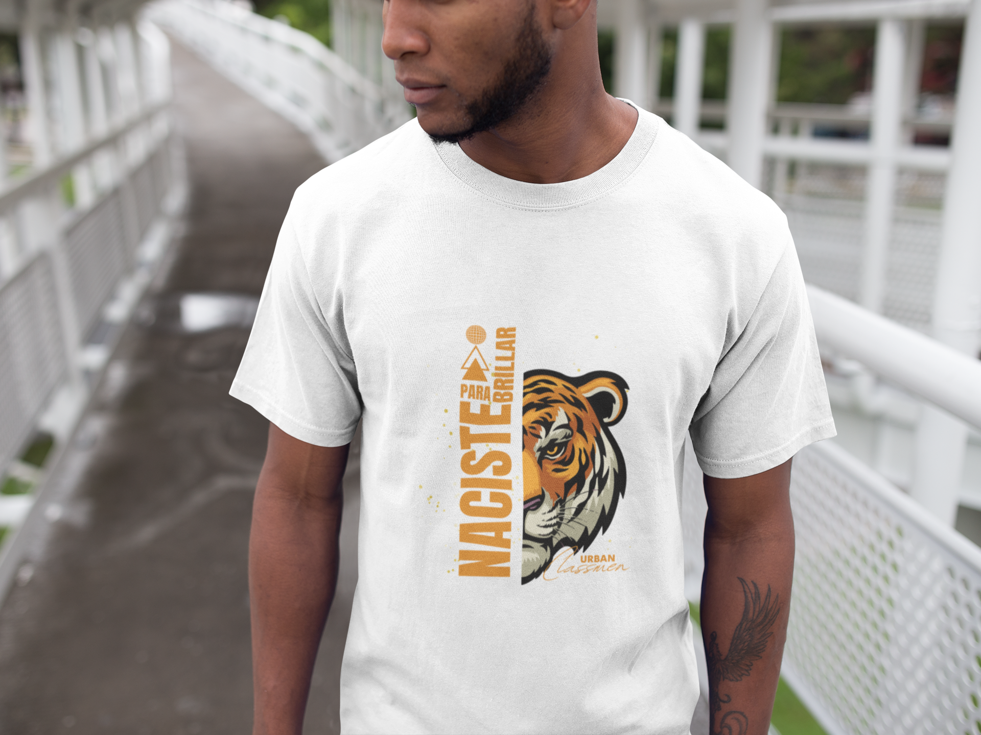Camiseta tamaño regular con una frase motivadora: "Naciste para brillar".